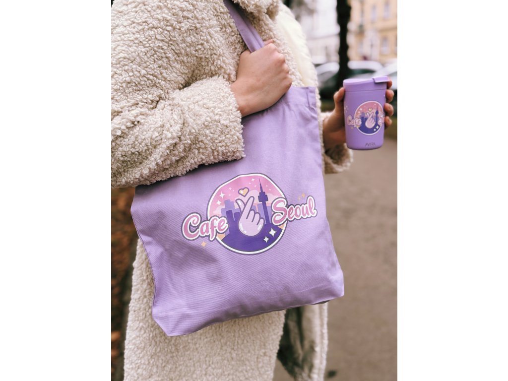 Hrnek, knížka, notebook nebo oběd – tahle taška zvládne všechno. Stylový doplněk pro každého fanouška Cafe Seoul a korejské atmosféry. 💜